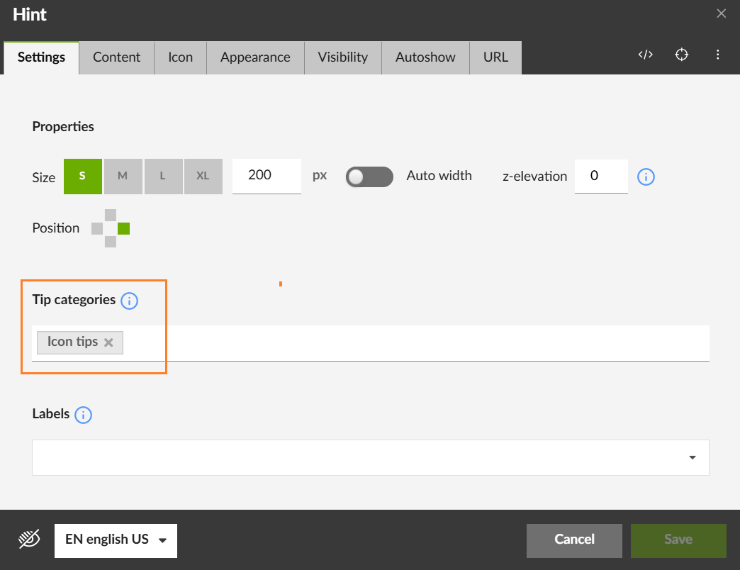 You can attribute categories to the Tips you create, i.e. categories which will make it easier for you to identify or search them, in case you have many Tips on a single page.