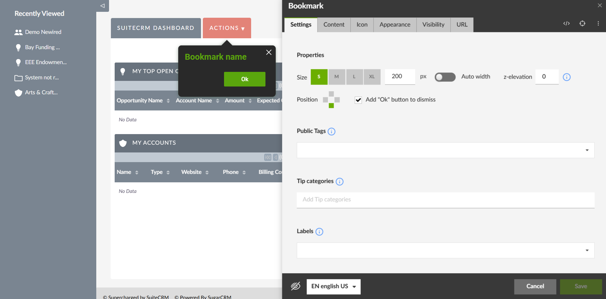 - edit title and content of the Bookmark